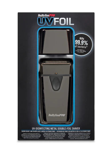 This BaBylissPRO UV-Disinfecting Cordless Metal UV Double Foil Shaver has an auto shutoff UV light indicator that kills 99.9% of bacteria!